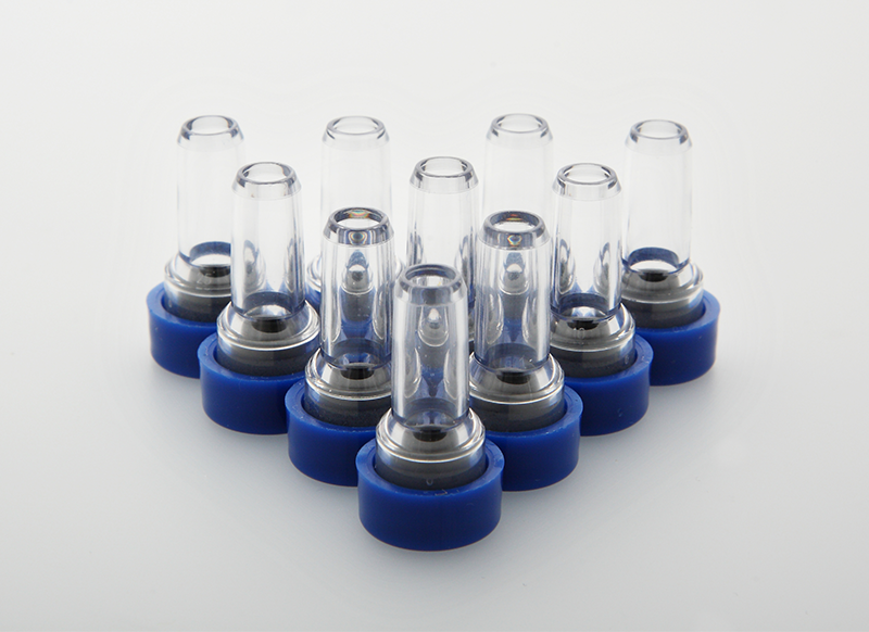 由聚碳酸酯(PC)和聚丙烯(PP)粒料為采用注塑工藝形成的相應(yīng)配件,和注射液用鹵化丁基橡膠塞(溴化)組裝成的產(chǎn)品