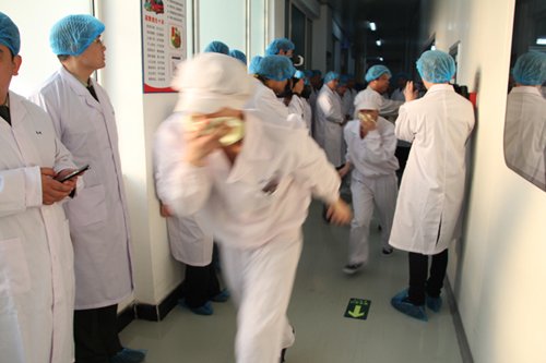 隨后,市消防支隊(duì)領(lǐng)導(dǎo)進(jìn)入華仁藥業(yè)三車間參觀生產(chǎn)現(xiàn)場(chǎng),并在三車間進(jìn)行了消防應(yīng)急疏散演練。隨著報(bào)警聲響起,三車間全體員工按照原定計(jì)劃,緊張有序從安全通道撤離至安全地帶。演練過(guò)程中,中控室人員對(duì)消防設(shè)備的操作準(zhǔn)確,車間人員緊急疏散迅速、有序,安保消防隊(duì)員處置措施標(biāo)準(zhǔn)。