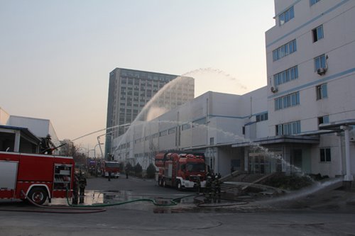 區(qū)消防大隊(duì)在公司二期立體庫(kù)進(jìn)行實(shí)戰(zhàn)演練