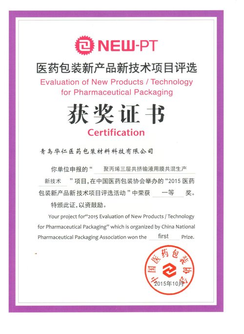 據(jù)了解,在第75屆中國國際醫(yī)藥原料藥/中間體/包裝/設(shè)備交易會(huì)上,中國醫(yī)藥包裝協(xié)會(huì)發(fā)布了2015年“新產(chǎn)品新技術(shù)項(xiàng)目評選活動(dòng)”評選結(jié)果。華仁藥業(yè)首次參選,以“聚丙烯三層共擠輸液用膜共混生產(chǎn)新技術(shù)”、“自封式塑料輸液軟袋組合接口”、“一種非PVC腹膜透析液包裝系統(tǒng)”三個(gè)課題分別獲得了一等獎(jiǎng)、二等獎(jiǎng)、一等獎(jiǎng)的好成績。