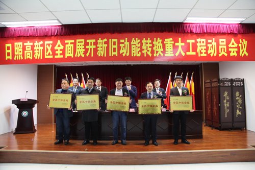 313日,在日照高新區(qū)召開的全區(qū)新舊動能轉(zhuǎn)換重大工程動員會議上,日照公司榮獲高新區(qū)“2017年度十佳企業(yè)”榮譽稱號。日照公司總經(jīng)理舒文代表公司上臺領(lǐng)獎